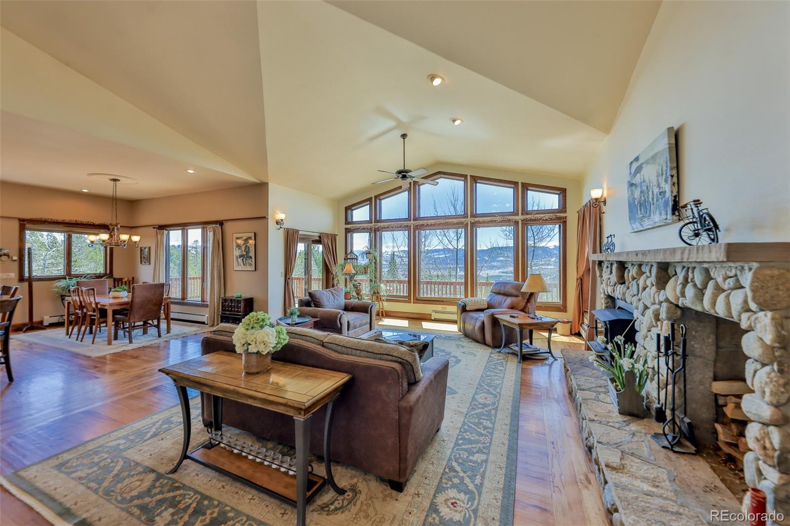 Resting on ~2 gorgeous acres, this home is spacious yet cozy with spectacular, panoramic views that can be seen from almost every room in the home. The lot offers privacy and serenity lending to the perfect mountain retreat. A potential mother-in-law suite or rental, low maintenance, high efficiency, low utility costs and no monthly HOA fee are financial details not to be missed. Entertain friends on the open concept main level or enjoy the peaceful outdoors with your favorite book on the expansive, wraparound deck. The kitchen boasts solid oak cabinetry, two walk-in corner pantries and a gorgeous custom hood. The main floor primary suite features access to the wraparound deck and a newly remodeled ensuite with a gorgeous, freestanding tub, glass walk-in shower and large walk-in closet. Downstairs you'll find another spacious living room and two separate sleeping quarters each with two large bedrooms, walkout access to a private deck, and a full bathroom plus an additional office/flex room. Head down another level to find a flex space and large bedroom with the potential to convert to a mother-in-law suite or rental unit. Enjoy your morning coffee or an apres cocktail while soaking in your private hot tub. The photography darkroom is plumbed for easy conversion into a blissful sauna room. There's ample storage for all your toys and gear in the oversized, two car garage and two unfinished levels tucked below the garage. The home was designed for efficiency and low maintenance with emissive windows for keeping the home cool in the summer and warm in the winter, Lifetime stained cedar siding, south facing design for passive solar heat, 50 year concrete tile roof, natural gas (vs. propane tank) and two wood burning stoves. This mountain retreat offers expansive views, feels incredibly private, and is a mere 15 minutes to downtown Winter Park. It's also centrally located between Winter Park Resort, Granby Ranch ski area, two excellent golf courses and the lake region.