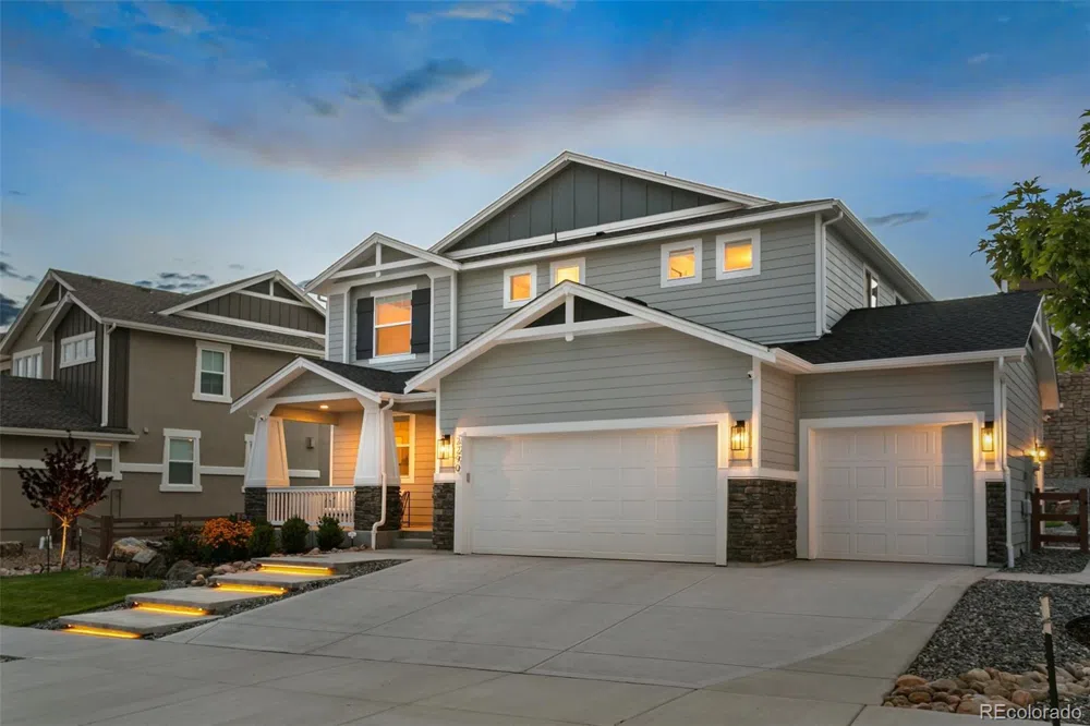 This stunning modern home in the coveted Flying Horse neighborhood features 5 bedrooms and 5 bathrooms, offering luxurious living in a beautifully landscaped setting. The main floor boasts elegant hardwood floors throughout, creating a seamless flow in the open floor plan. The spacious living room is centered around a cozy gas fireplace, custom built in cabinets and is complemented by motorized blinds. A separate dining room provides the perfect space for formal meals, while the gourmet kitchen is a chef's dream, complete with stainless steel appliances, granite countertops, a range top stove, and a striking backsplash. The kitchen also includes an eating area, a walk-in pantry, and easy access to the backyard, where you’ll find a covered patio and a fenced-in yard ideal for outdoor entertaining. The main floor also features a private office, perfect for working from home. Upstairs, a versatile loft area leads to the luxurious master suite, which showcases a tray ceiling and an en-suite bathroom with a spa-like walk-in shower, double vanity, and a spacious walk-in closet. Three additional bedrooms share this level, along with an oversized laundry room that offers a sink and a window for natural light. The finished basement extends the living space with a family room featuring a gas fireplace, a beautifully appointed wet bar with a wine fridge, and a junior master suite. Additionally, this home includes a 3-car attached garage and upgraded lighting throughout. With its exquisite details and thoughtful design, this home offers the perfect blend of comfort and style.