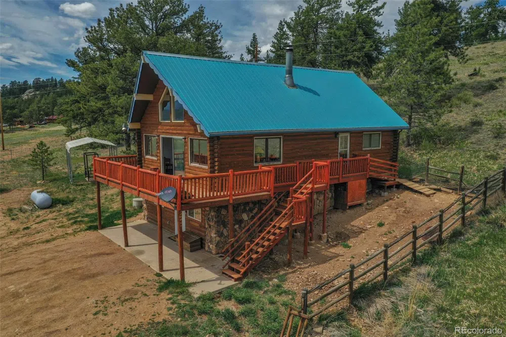 Awesome 2/2 Colorado Mountain Cabin with tons of potential! The lower level is fully outfitted with Commercial office space and reception area. Upstairs is the iconic Colorado Log Cabin living area with kitchen, side entry and large great room/dining/family area with a cathedral ceiling, Master bed and bath. There are sliding glass doors leading to a huge deck where you can entertain while enjoying the beautiful Pikes Peak and surrounding mountain views. Upstairs has a private bedroom and a bath, private cozy & quiet. The land is fully functional and is fenced and X fenced. There is water to the front pastures, which are open and level and can be viewed from the cabin. There are 3 total pastures with plenty of potential for pasture rotation. There is a small gravel pit which is great if you have ever had to maintain roads.. you get it! This property is backed up to the boundless Pike National Forest with 8,000+ acres of open land to explore with your own private access to ride, hike, hunt & explore in 3 Major big game units. Convenient location off Hwy 24, with an easy hop to Breckenridge, Keystone, or Monarch ski areas, a short run to Woodland Park or Colorado Springs for shopping/entertainment, easy access for delivery services such as UPS, Fed Ex etc. Iconic Pikes Peak views, a cozy cabin & potential commercial space all wrapped up into one neat little package….what's not to love? Needs some TLC, so expect to get in here and maximize the potential and reap the benefits!