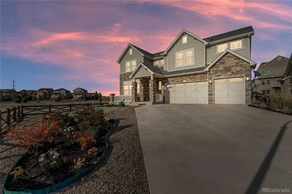 This magnificent 8-bedroom, 5-bathroom home, nestled on a peaceful cul-de-sac, is a true showstopper! With striking stone detailing, a 3-car garage, an extended driveway, and a welcoming front porch, this property offers excellent curb appeal. Step inside to an inviting foyer that leads to immaculate formal living and dining rooms, perfect for entertaining. The interior exudes elegance, featuring high tray ceilings, calming color schemes, plantation shutters, recessed lighting, and sleek hardwood flooring. The spacious family room, complete with a beautiful stone-wall fireplace, adds warmth and charm. The stunning chef's kitchen is a dream, boasting stainless steel appliances, granite counters, custom wood cabinetry with crown molding, a stylish mosaic tile backsplash, a practical pantry, and a center island with a breakfast bar. Ascend to the upper level to find sunny loft areas ideal for a reading nook or hobby corner. The grand main suite is a luxurious retreat! It highlights a double-door entry, a cozy sitting area, and a spa-like ensuite featuring a soaking tub, dual vanities, a large step-in shower, and a generous walk-in closet. Plush carpeting adds comfort to the secondary bedrooms. Discover additional conveniences in the finished basement, including a workout area with a dry bar, a spacious media room with pre-wired surround sound, a sizable bedroom, and a bathroom. Enjoy relaxing on the open patio that backs to a green belt while taking in the peaceful neighborhood views—ideal for unwinding after a long day. This exceptional home offers luxury, space, and comfort, making it a dream come true! Make it yours today!